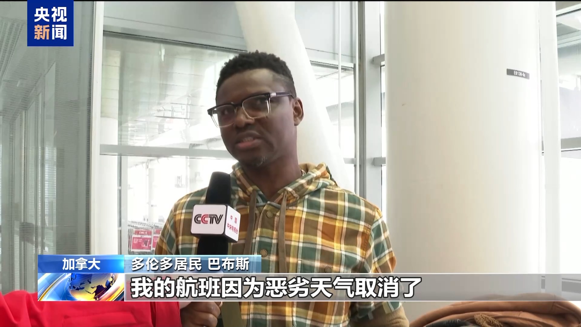 总台记者 张森:受暴风雪影响,多伦多皮尔逊机场的航班大规模取消或延误,很多乘客的出行计划也受到了影响。