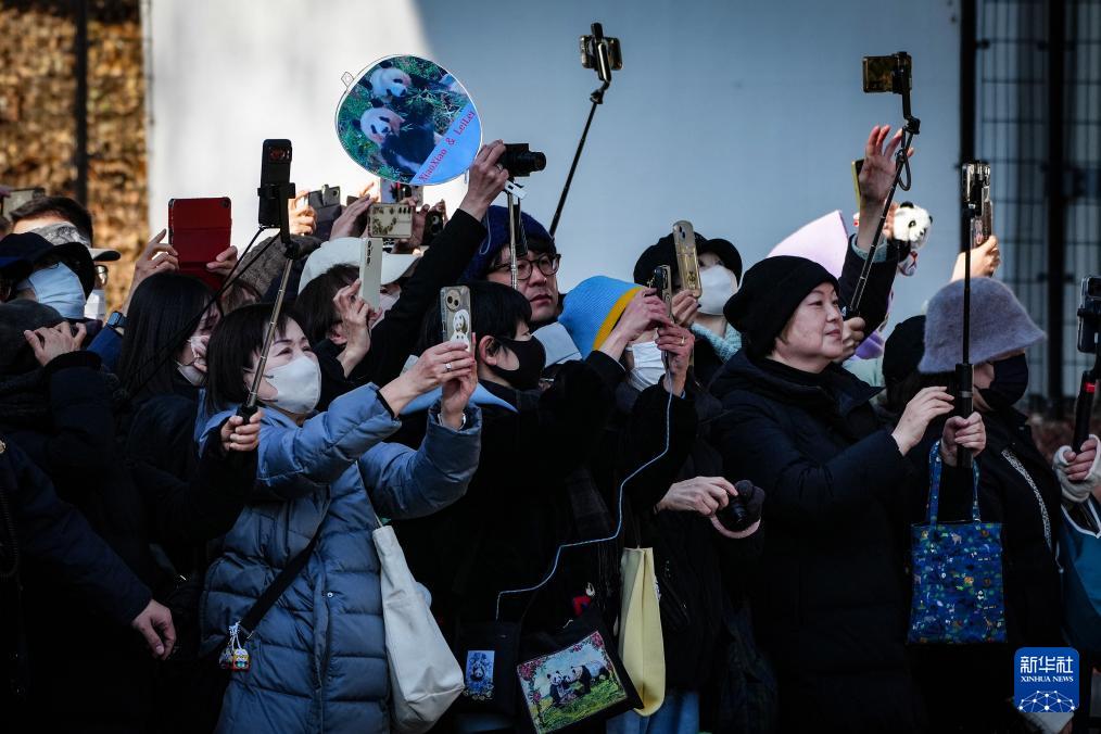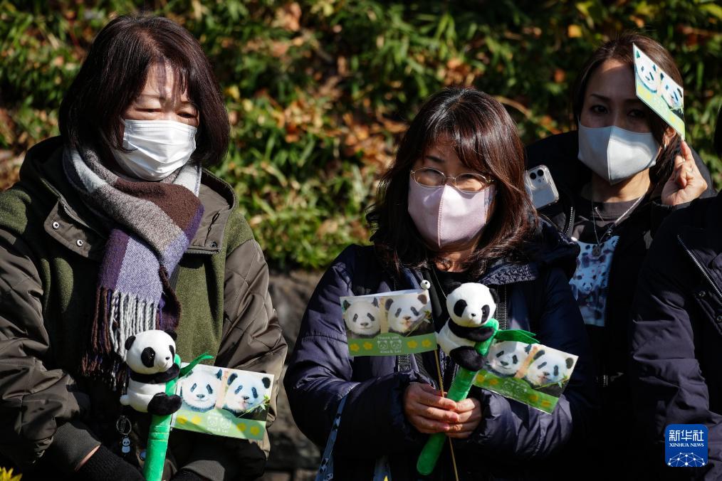 1月27日,当地民众在日本东京上野动物园外送别大熊猫“晓晓”和“蕾蕾”。新华社记者 贾浩成 摄