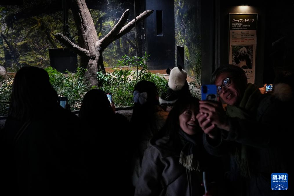 1月25日,游客在日本东京上野动物园拍摄大熊猫“晓晓”。新华社记者 贾浩成 摄