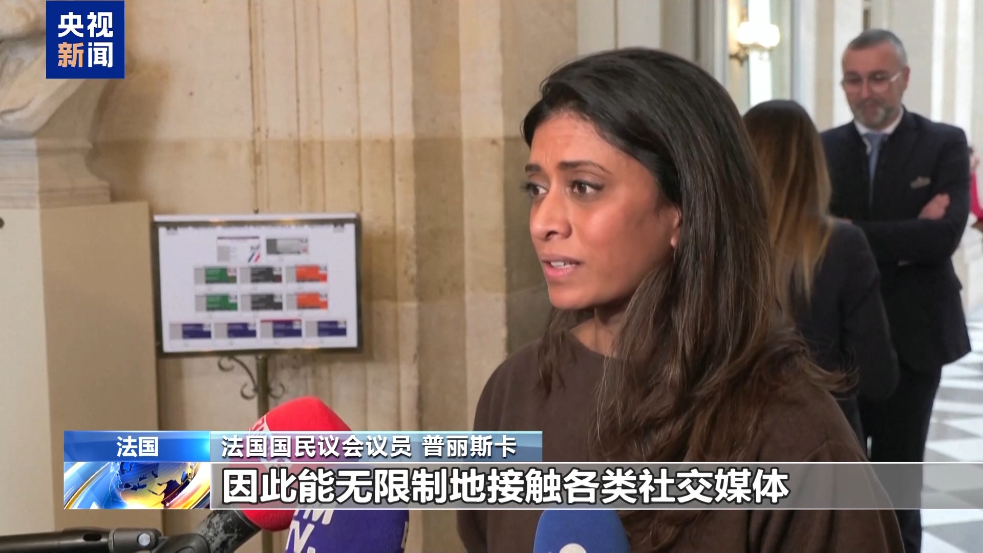法国国民议会议员 普丽斯卡:尤其是青少年群体,他们往往独自使用手机,因此能无限制地接触各类社交媒体。而在这些平台上,能看到诸如网络欺凌等现象,甚至能接触到暴力内容、不雅内容等。因此,作为政界人士,我们必须在这一至关重要的问题上明确表明立场。