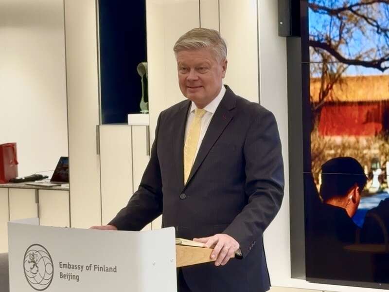 1月28日,北京,芬兰驻华大使明凯(MikkoKinnunen)出席中国媒体见面会,介绍芬兰总理奥尔波访华成果。中青报·中青网记者马子倩/摄