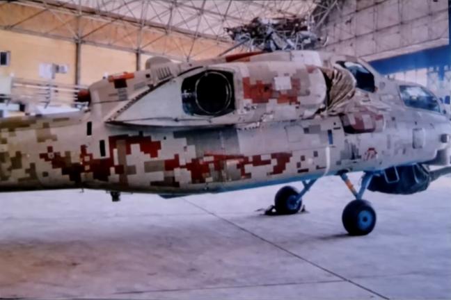 据俄罗斯方面28日流出的照片显示,俄罗斯米-28NE武装直升机出现在伊朗。照片中,直升机采用数码迷彩涂装,且没有桨叶,易损部位被特殊防护罩包裹,表明该装备可能刚刚运到,尚未投入使用。