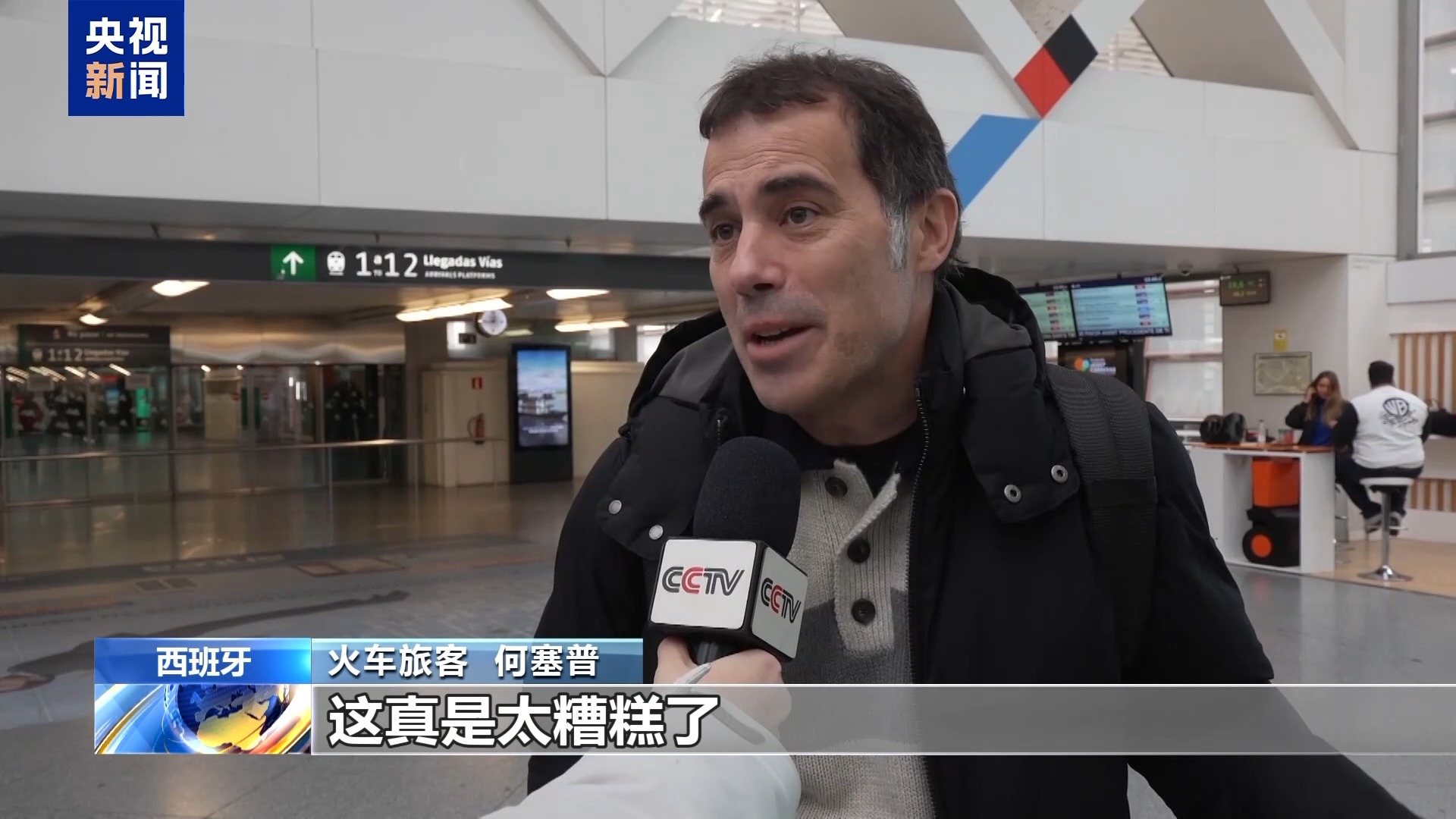 火车旅客 何赛普:我乘坐的火车本应11点20分抵达马德里,但现在12点45分了,我才出站,延误了1小时20分钟。这趟车的时速下降到120公里,甚至有时候时速只有60到80公里,这真是太糟糕了。
