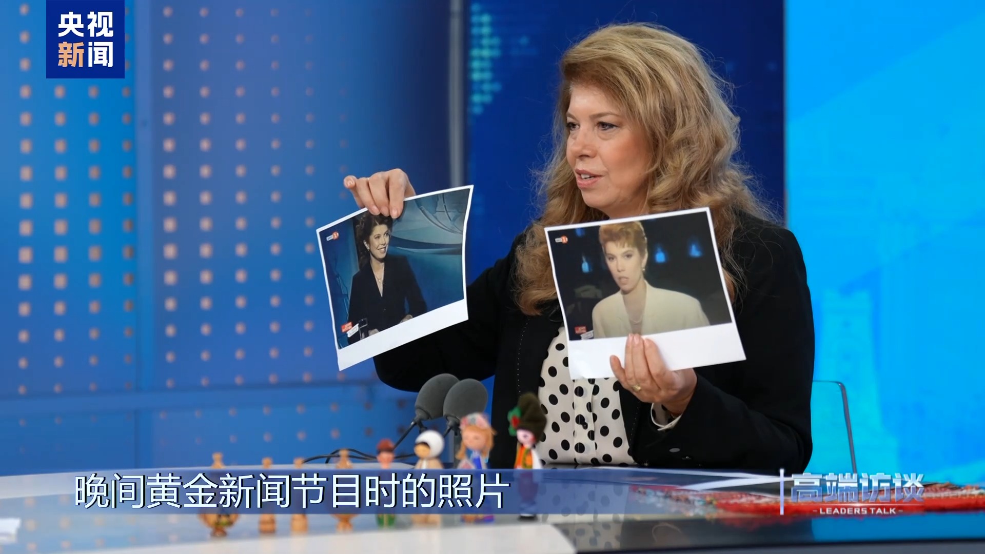 约托娃:谢谢你们,我非常激动。这些照片,至少大多数,应该都来自我在保加利亚国家电视台工作时的岁月。还有你们最后展示的这些照片,我能再给观众看一下吗?就是这张照片,还有这张照片,这是我播报国家电视台晚间黄金新闻节目时的照片。你们知道那有多激动人心吗?在晚上八点对着600万保加利亚人说“晚上好”,并说,“欢迎收看保加利亚国家电视台晚间要闻,接下将为您播报今日最重要的新闻”。感觉仿佛就是昨天!