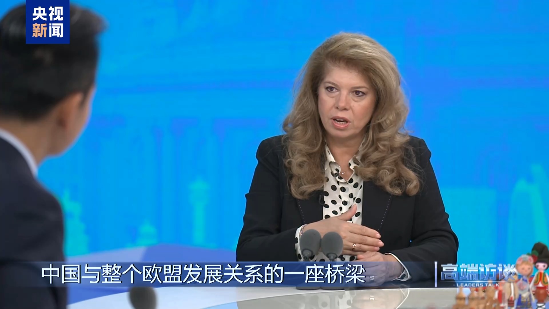 在专访中,她称赞中国现代科技与悠久历史并存:“你们应当为自己是这样一个文明、这样一段丰厚历史的幸福继承者而感到自豪——那是人类真正的瑰宝。”她积极评价中保关系的稳步发展:“保中关系证明了两个民族能够实现相互理解,能够实现共同繁荣。”她表示,期待中欧交流更加稳固、更具持续性:“我们不应将对方视为对手,而应该是携手前行的伙伴。”