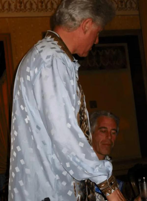 还有照片显示,克林顿手持饮料,站在爱泼斯坦旁边。