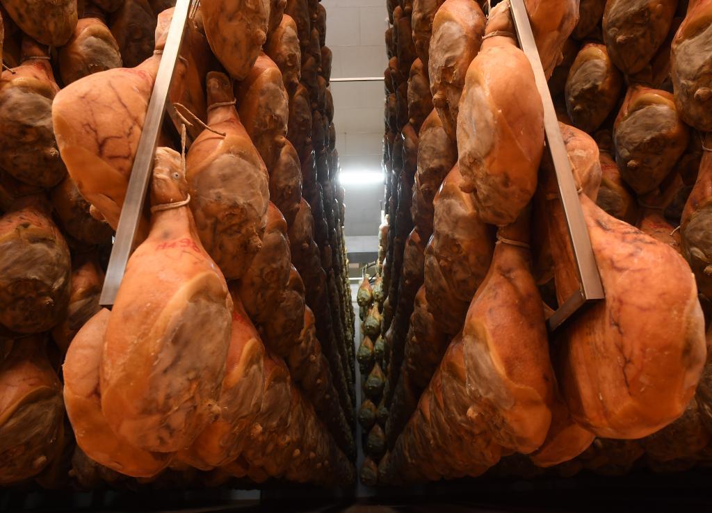 这是2021年4月13日在意大利帕尔玛一家公司工厂拍摄的制作中的帕尔玛火腿。新华社发(阿尔贝托·林格利亚摄)
