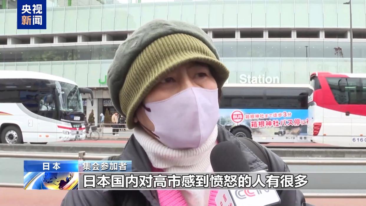 集会参加者:日本国内对高市感到愤怒的人有很多,如果真的把国民的生活放在第一位,日本政府就应该把外交做好,明确表示不挑动战争,遵守和平宪法,这才是最重要的。