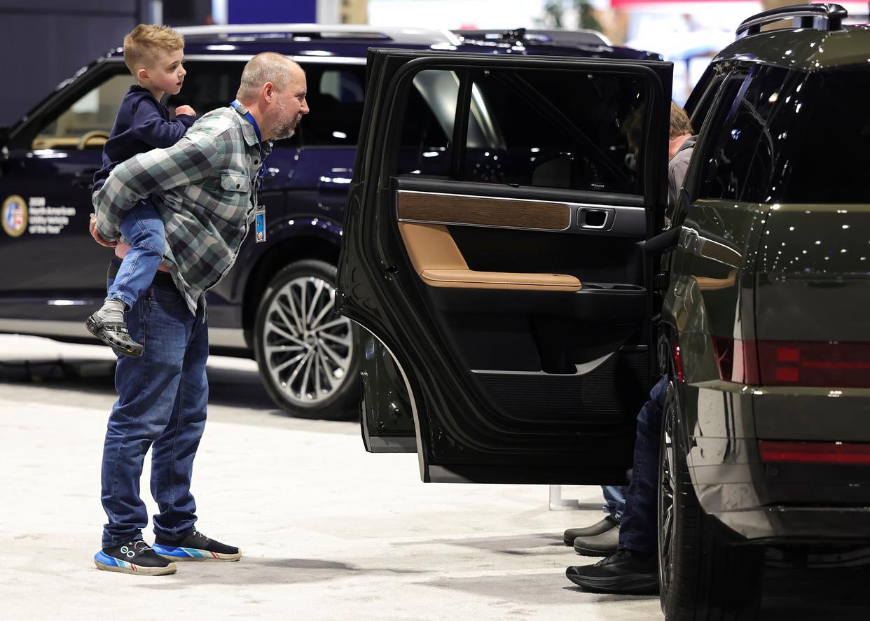 2月6日,在美国芝加哥麦考密克展览中心,人们观看展车。新华社发(乔尔·莱纳摄)