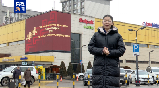 当地时间2月12日,总台春晚宣传片吉尔吉斯语版首次亮相吉尔吉斯斯坦首都比什凯克地标建筑格罗布斯商场外墙大屏。比什凯克居民娜米拉表示,去年她有幸观看了总台春晚,那是一场令人难忘的精彩演出,今年自己会继续收看总台春晚。