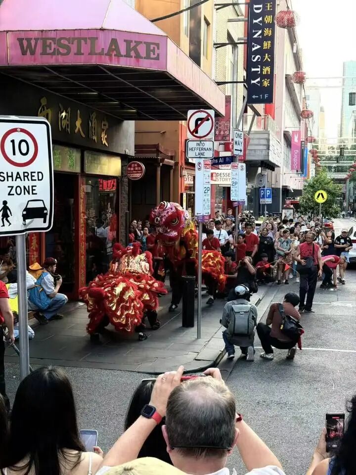 今天澳洲唐人街有春节活动,放了鞭炮,还有舞狮活动。我和朋友吃完之后就回寝室了。