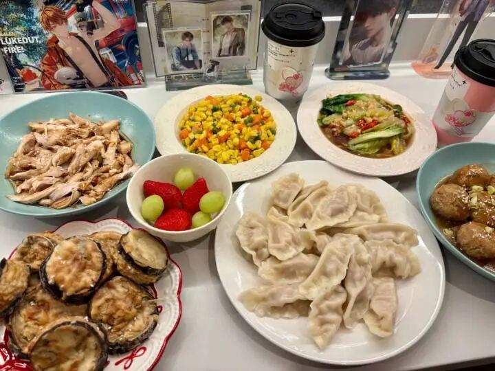 “这个除夕,我们一个公寓房间四个人,两人包饺子,两人做菜,为自己准备了一顿丰盛的年夜饭。