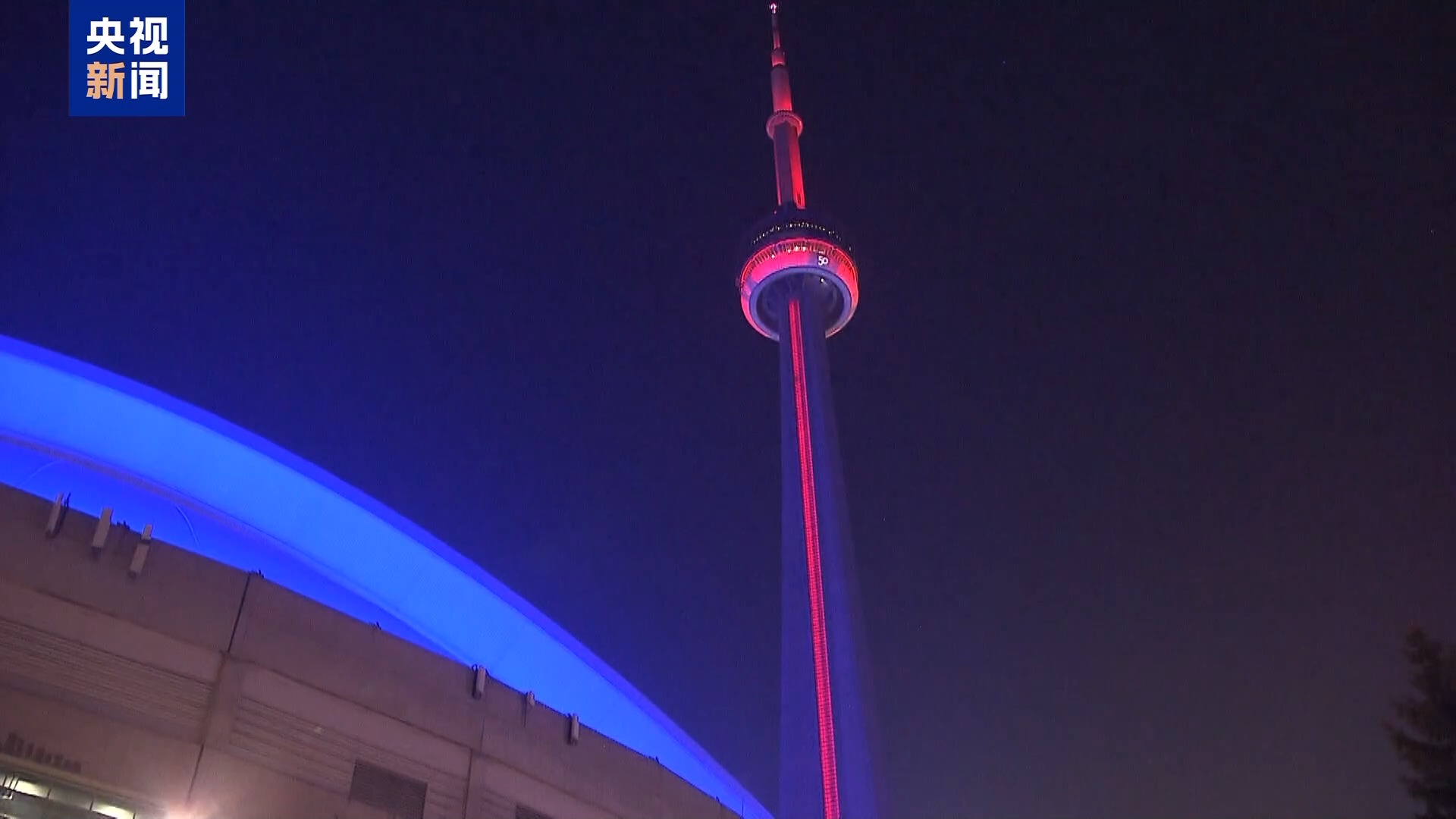 农历大年初一,加拿大最大城市多伦多的地标建筑国家电视塔点亮红色灯光,迎接农历马年春节的到来。