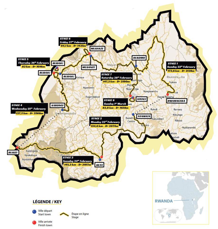 2026环卢旺达自行车赛于2月22日至3月1日举行,共分8个赛段,全长978公里,吸引了来自世界各地的18支车队参赛。