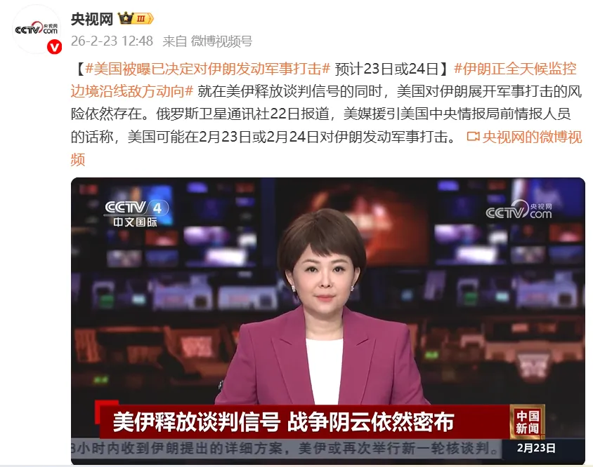 据央视网2月23日消息,就在美伊释放谈判信号的同时,美国对伊朗展开军事打击的风险依然存在。