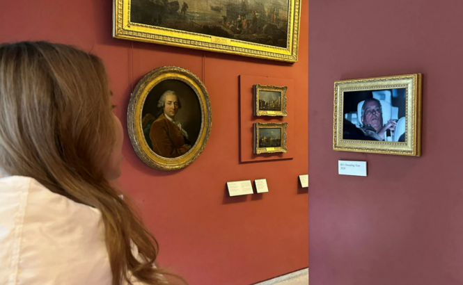 当地时间2月22日,“安德鲁被捕后获释坐在车上”照片在法国卢浮宫“短暂展出”。图源:英媒