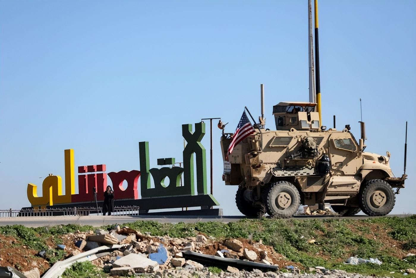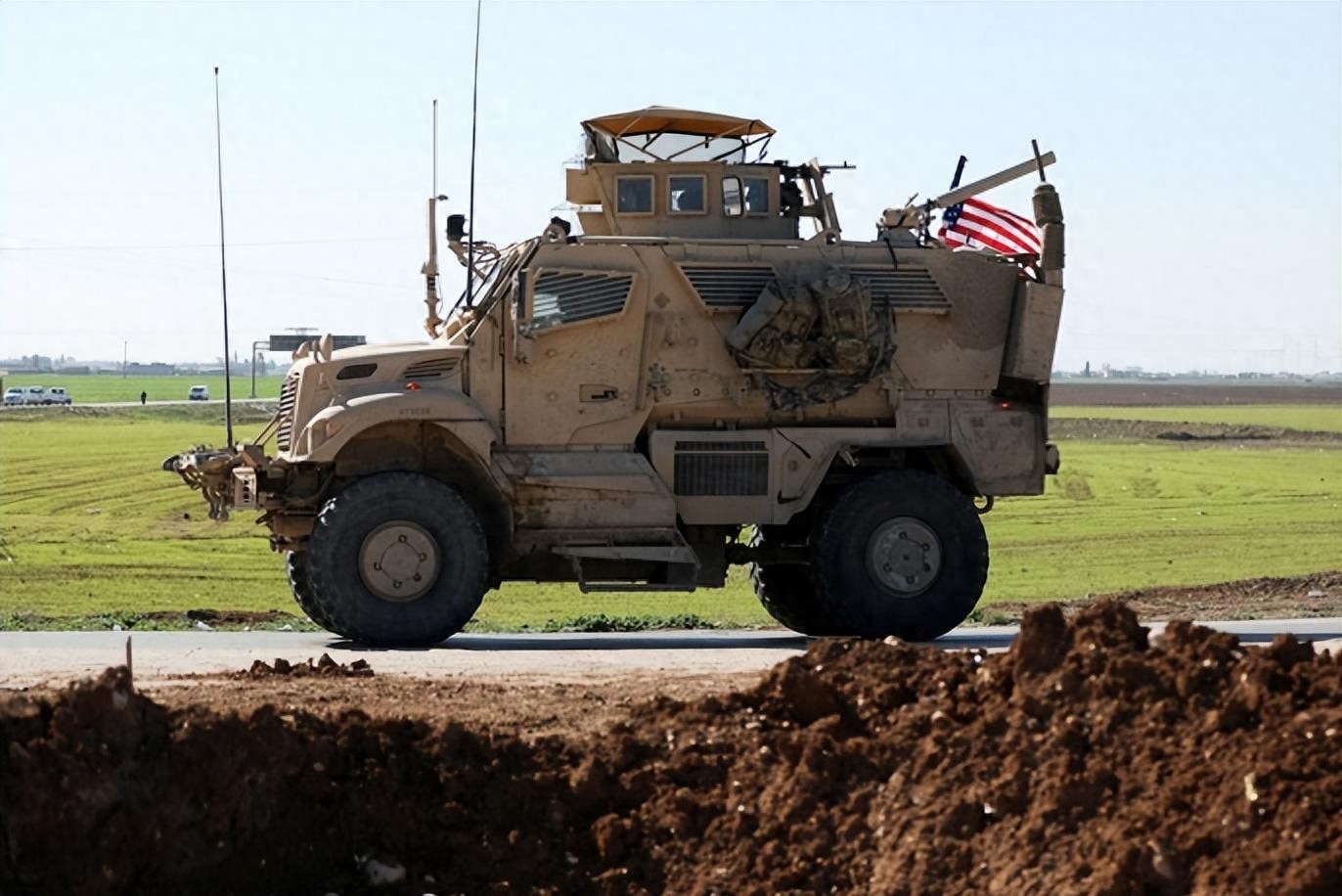 当地时间2月23日,一辆美军装甲车从叙利亚卡斯拉克军事基地撤离。 图源:外媒报道配图