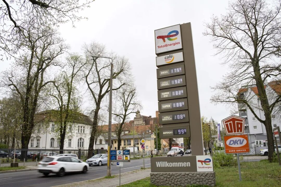 2024年4月3日,汽车驶过德国首都柏林的一家加油站。新华社记者 任鹏飞 摄