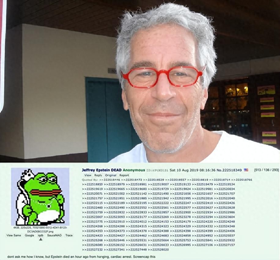 有用户在4chan网站提前公布爱泼斯坦死讯 图源:美媒