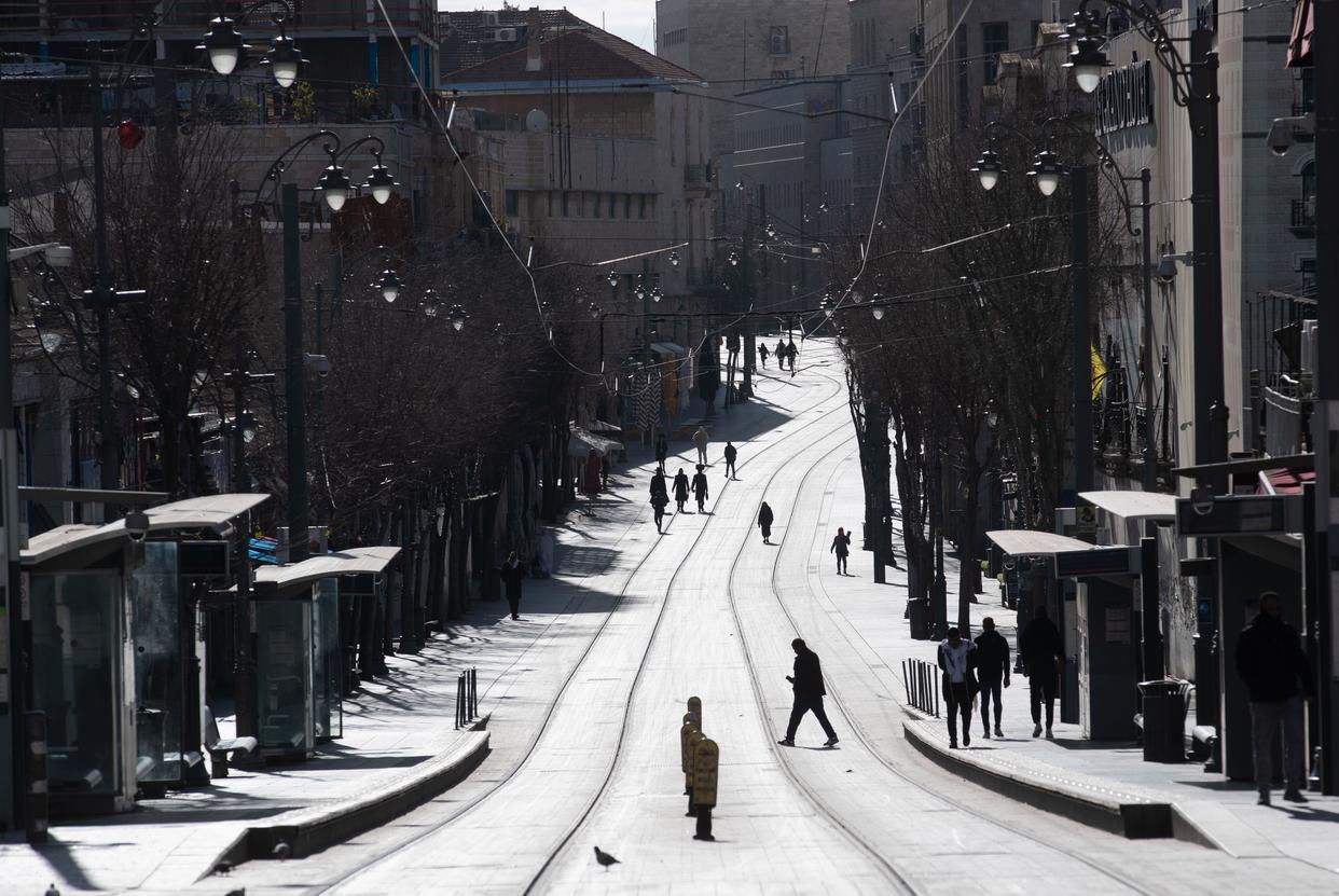 这是2月28日拍摄的防空警报响起后的耶路撒冷街头。新华社记者 陈君清 摄