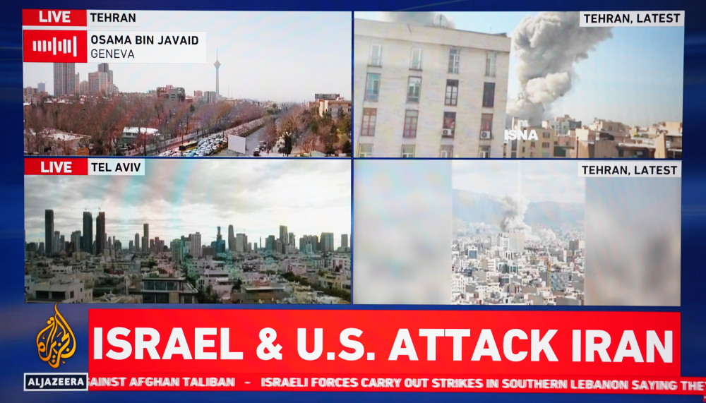 这张2月28日拍摄的半岛电视台直播画面显示的是美国与以色列对伊朗发起联合军事行动。新华社记者张浩波摄