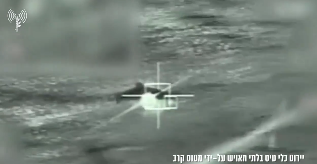 △当地时间28日晚,以色列国防军公布一段画面,显示当天早些时候拦截一架射向以色列的伊朗无人机