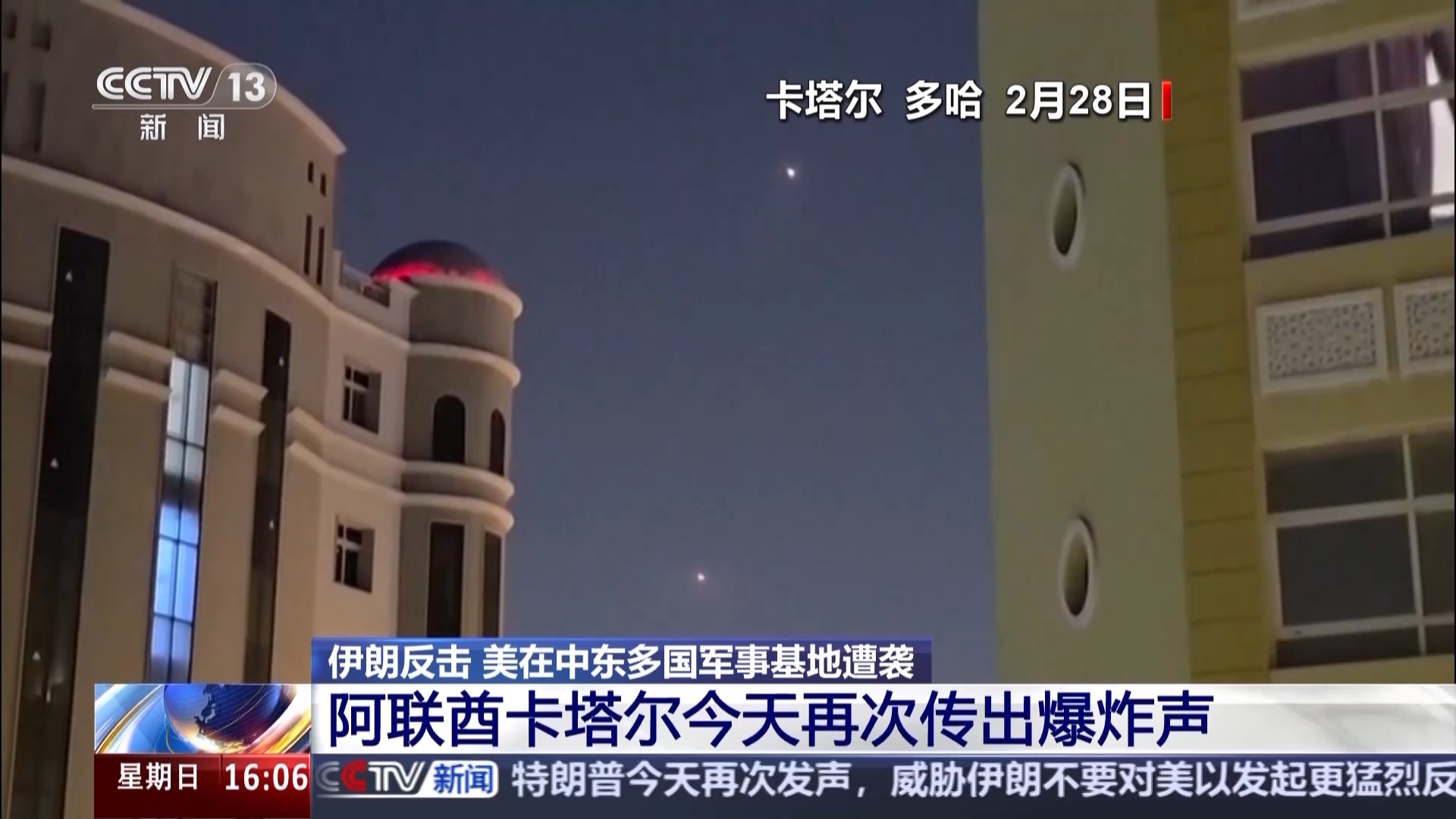 伊朗的反击目标还对准了美国在中东多国的军事基地。当地时间今天(3月1日)上午,阿联酋迪拜、卡塔尔多哈等地就再次传出爆炸声。