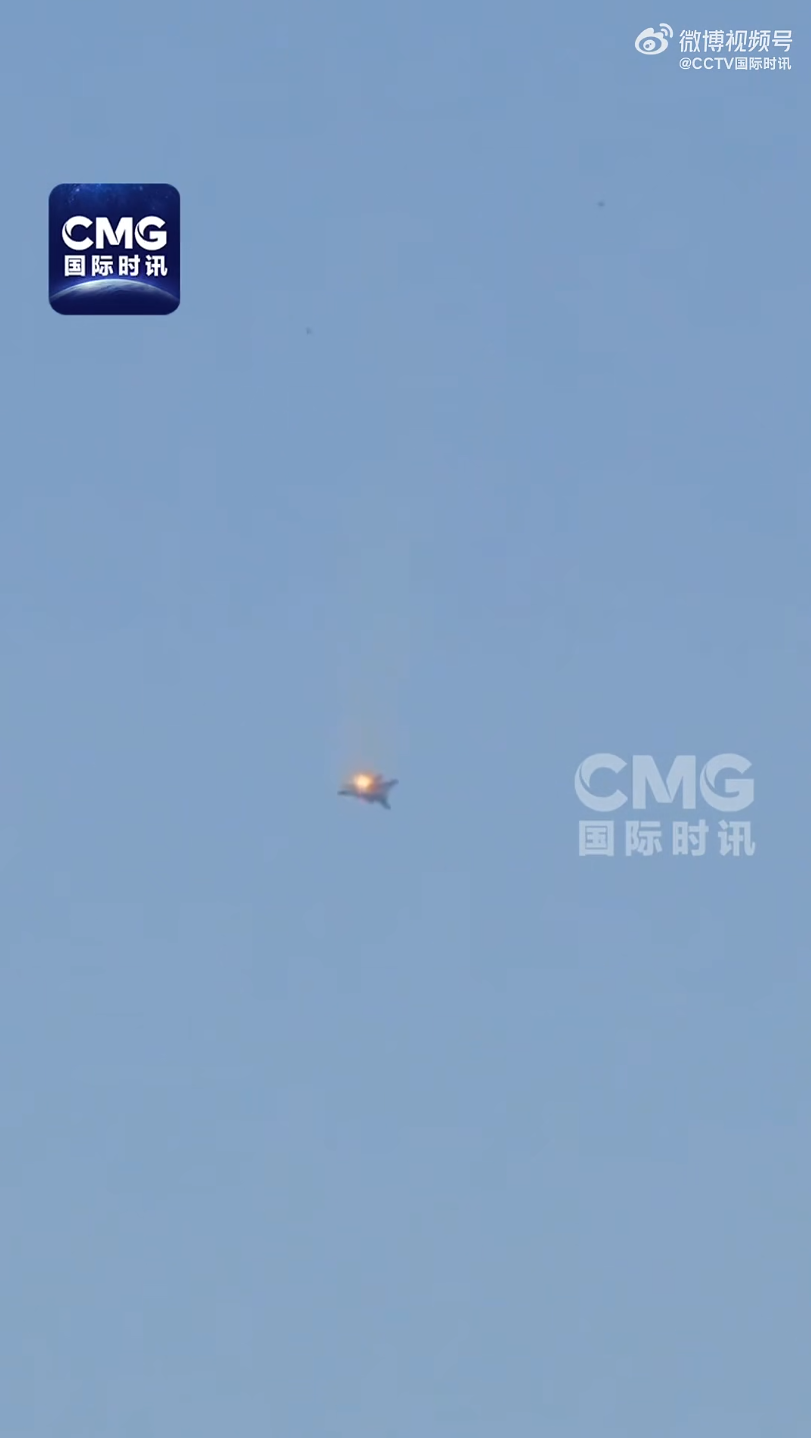 社交媒体上的视频显示,战机尾部起火,从天空坠落。