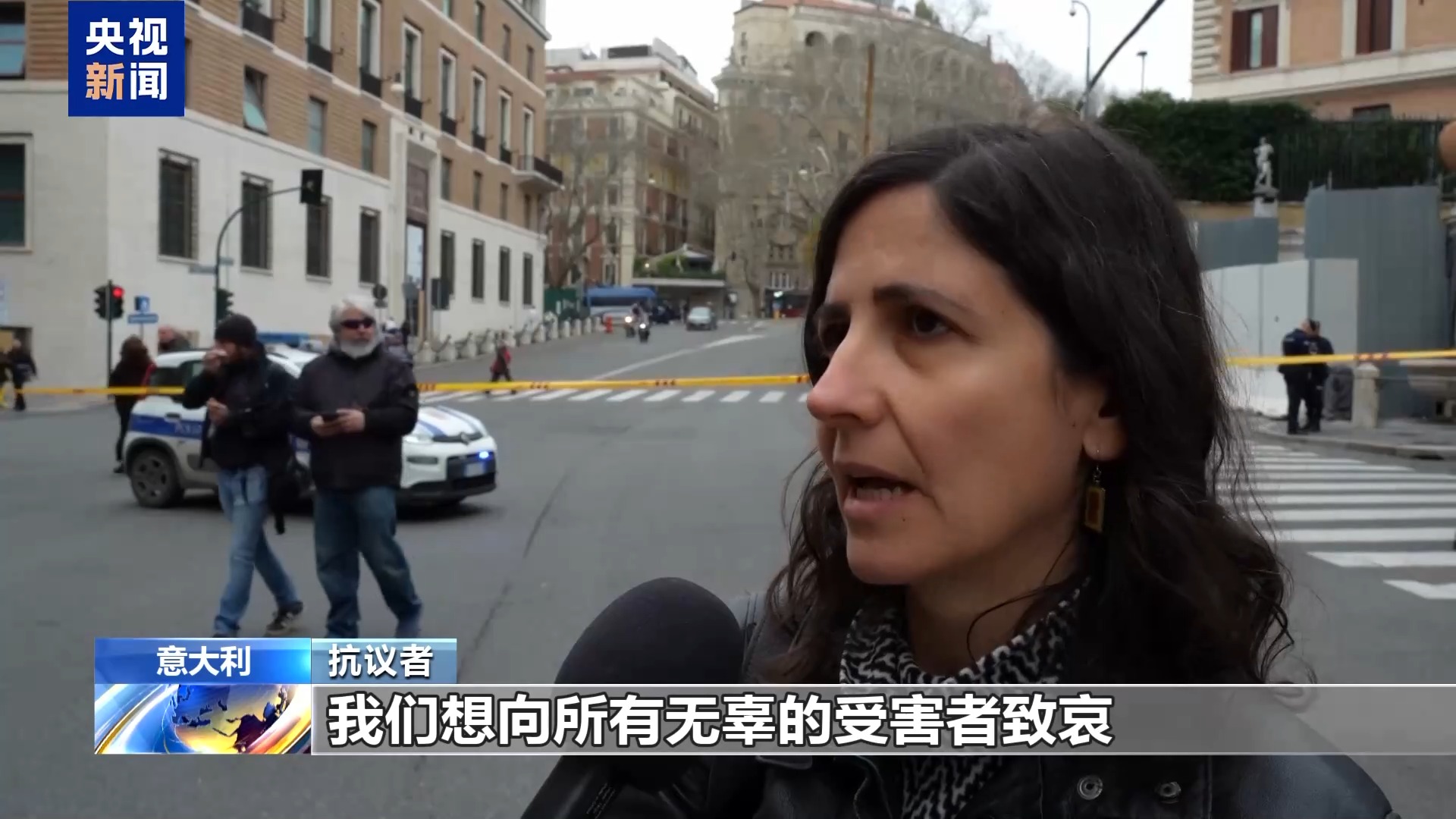 3月1日,意大利反战组织在美国驻意大利使馆前举行示威集会,抗议美国和以色列对伊朗的军事打击,反对侵略和单边军事行动。