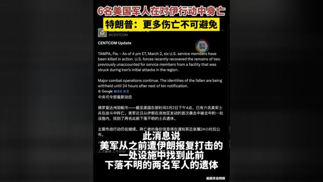 据新华社报道,美军中央司令部3月2日在社交媒体平台发布消息说,已有6名美国军人在对伊朗的军事行动中身亡。