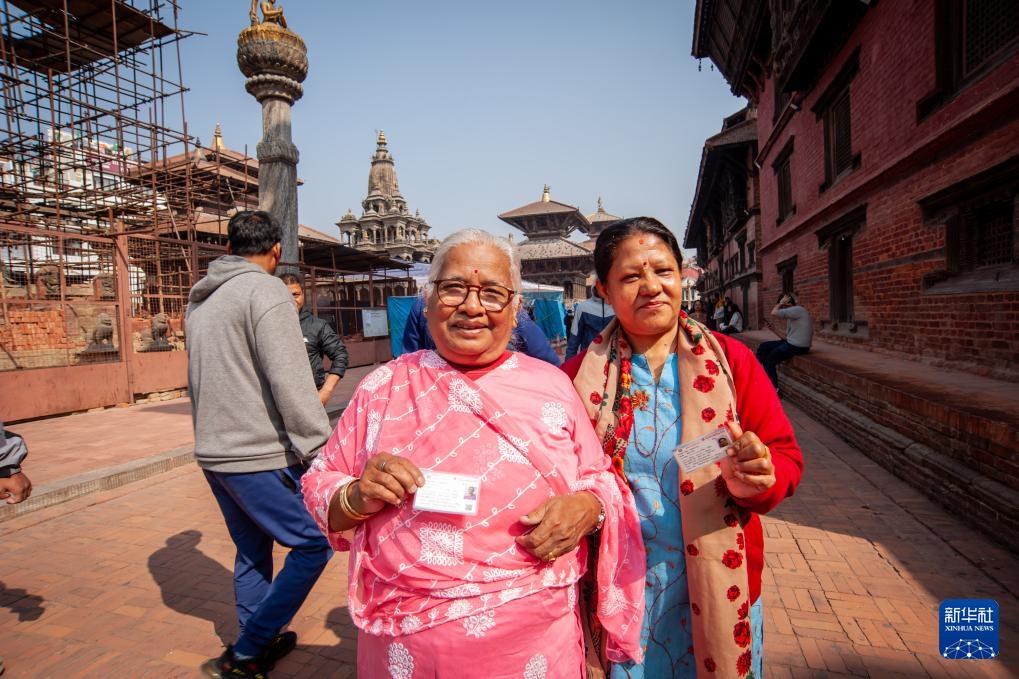 3月5日,在尼泊尔勒利德布尔,选民在投票站展示证件。新华社发(哈里·马哈尔詹摄)