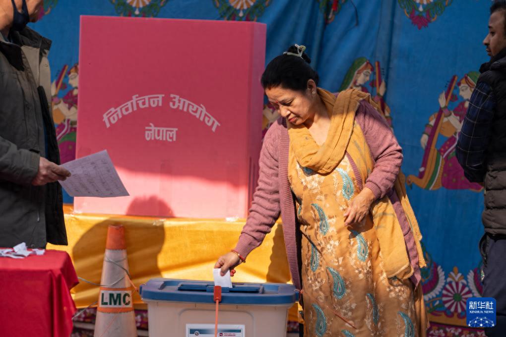 3月5日,在尼泊尔勒利德布尔,一名选民在投票站投票。新华社发(哈里·马哈尔詹摄)