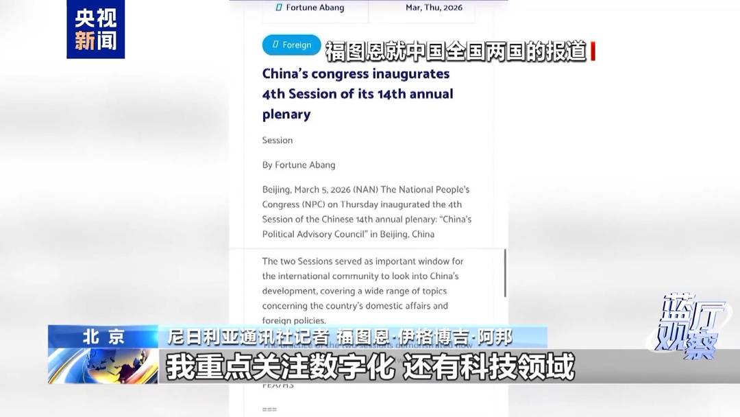 从2022年开始,福图恩多次来中国采访,从中非合作论坛到全国两会,从工厂到社区。福图恩说,作为世界第二大经济体,中国为全球发展提供了一项项中国方案,而发展中国家云集的非洲正迫切需要这些经验。因此,今年报道中国全国两会,他特别给自己定下了完成20篇报道的目标。