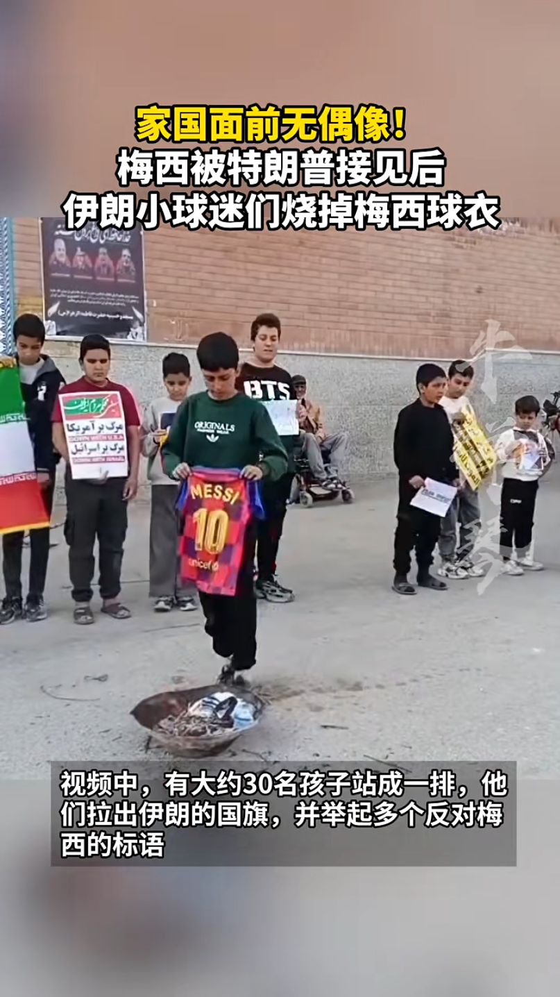 据环球时报3月9日视频报道:据美国雅虎新闻网站消息,足球巨星梅西在与迈阿密国际队球员一同前往白宫接受特朗普会见后,在中东地区引发强烈反响。近日,社交媒体流传的视频显示,一些伊朗儿童焚烧了印有梅西名字的巴塞罗那球衣和阿根廷国家队球衣。