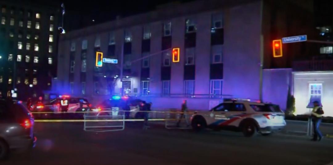 当地时间3月10日凌晨,美国驻多伦多领事馆遭枪击。 图源:加拿大电视台视频截图
