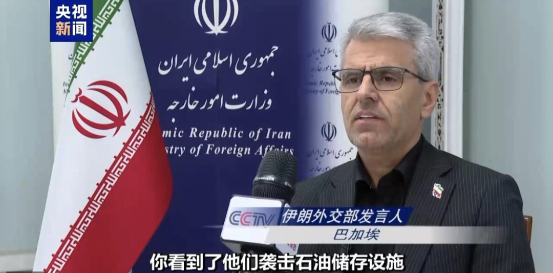 伊朗外交部发言人 巴加埃:两天前你也在德黑兰,你看到了他们袭击石油储存设施,大量烟雾排放到了空中,那些烟雾有毒,还下起了毒雨。大家都明白这是环境污染,这是对环境的犯罪,所以很多人都认为这已经不仅是战争罪和反人类罪,更是种族灭绝,因为他们的目标是每一位伊朗公民。