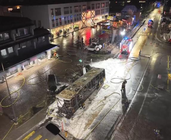据瑞士媒体报道,当地时间3月10日18时25分左右,一辆邮政公交车在凯尔泽斯市市中心起火。瑞士广播电视台网站发布的图片和视频显示,公交车完全被火焰吞噬,火势凶猛,场景令人触目惊心。