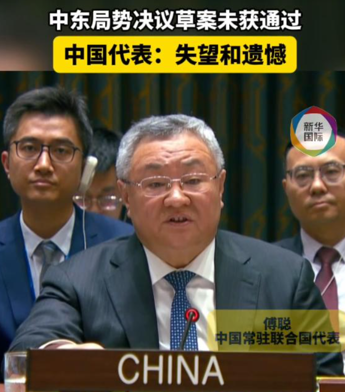 中国常驻联合国代表傅聪11日在安理会表决中东局势决议草案后的解释性发言中表示,俄罗斯提出的决议草案重申联合国宪章宗旨和原则,敦促各方立即停止军事行动,谴责所有针对平民和民用设施的袭击,鼓励各方回归外交谈判轨道,中方表示欢迎和支持,对决议草案未获通过感到失望和遗憾。