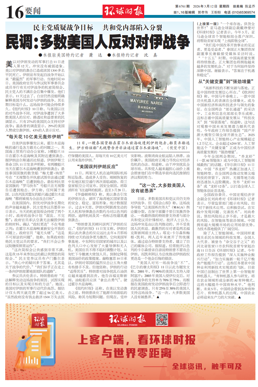 美以对伊朗发动的军事打击11日进入第12天,冲突没有减弱迹象。美以对伊朗的袭击已造成该国1300多名平民死亡,伊朗宣布发起自战争开始以来“最猛烈”的军事行动。当地时间10日,美国政府官员与参议院军事委员会成员举行有关对伊战争的机密简报会,民主党人的不满在会后集中爆发。他们表示,11天过去了,白宫仍然没能明确解释美国为何发动与伊朗的战争,其长期目标是什么,这场战争可能会持续多久。《纽约时报》10日称,与美国以往的对外战争不同,对伊战争遭到了大多数美国人的反对。路透社和益普索的民调显示,只有27%的美国民众支持对伊战争;盖洛普的调查显示,29%的美国人赞成空袭伊朗,43%的人表示反对。