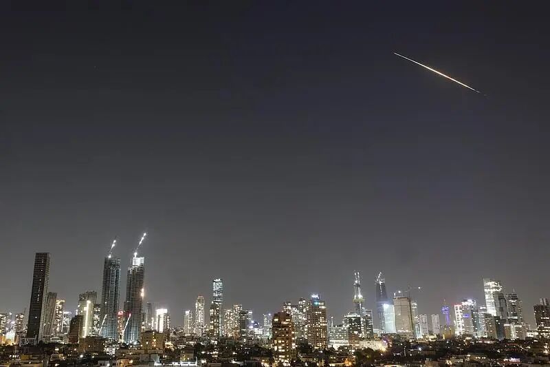 △3月11日,以色列特拉维夫,一枚导弹划过特拉维夫上空