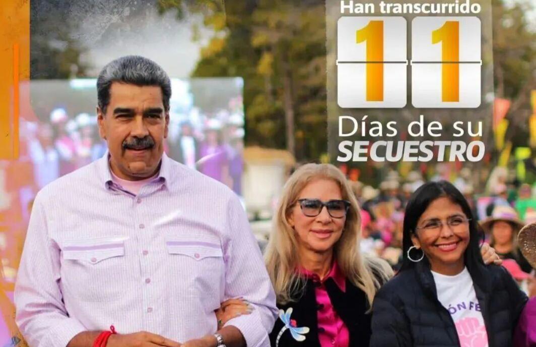 在马杜罗夫妇于1月3日被美国强行带走后,马杜罗的社交平台账号自1月13日开始发布海报照片,配文“被绑架11天”。自此,该账号以日更频率发布海报照片,画面都包含了马杜罗夫妇、标注了两人被绑天数、都有“我们要他们回来”的话题标签。