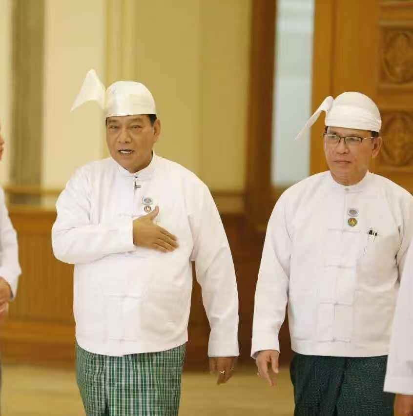 △缅甸联邦议会人民院议长钦益(左)副议长貌貌翁(右)