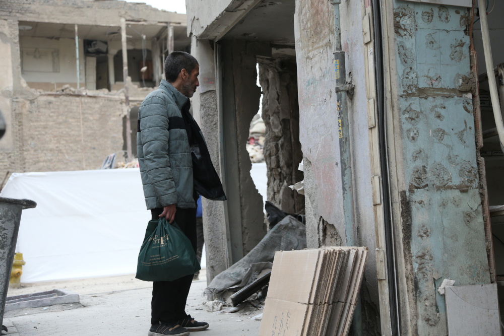 3月15日,在伊朗首都德黑兰的一处遇袭居民区,一名男子站在一座损毁建筑前。新华社记者 沙达提 摄