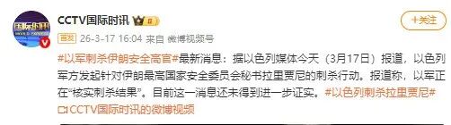 据以色列媒体今天(3月17日)报道,以色列军方发起针对伊朗最高国家安全委员会秘书拉里贾尼的刺杀行动。报道称,以军正在“核实刺杀结果”。目前这一消息还未得到进一步证实。