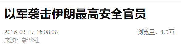 据中东媒体17日报道,以色列国防军16日晚袭击了伊朗最高国家安全委员会秘书拉里贾尼。目前以方正在了解拉里贾尼是否身亡。伊朗方面尚未对此作出表态。