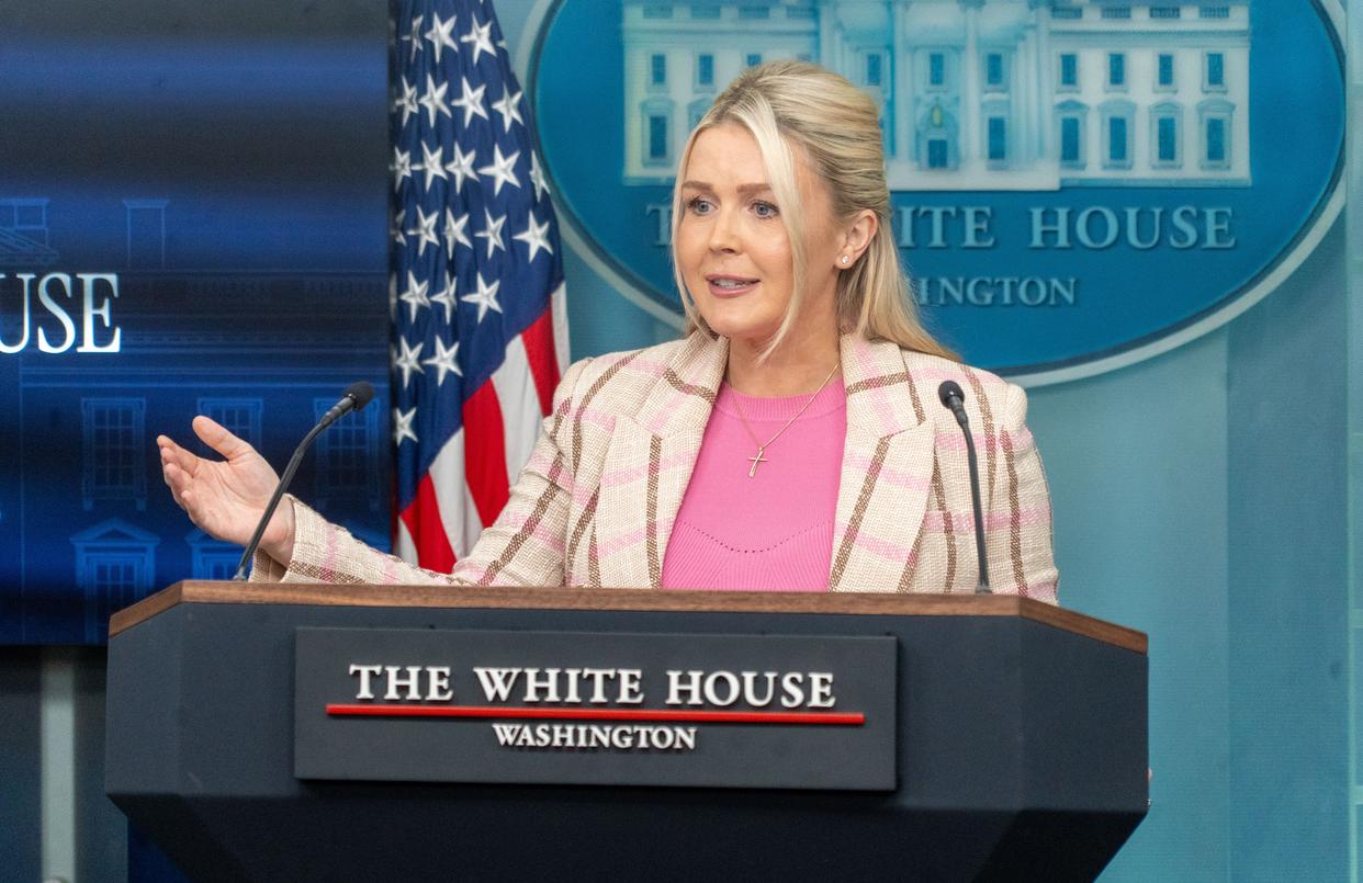 3月10日,在美国首都华盛顿,白宫新闻秘书莱维特出席记者会。莱维特说,美国海军目前没有护送任何油轮或其他船只通过霍尔木兹海峡。新华社发(李源清摄)