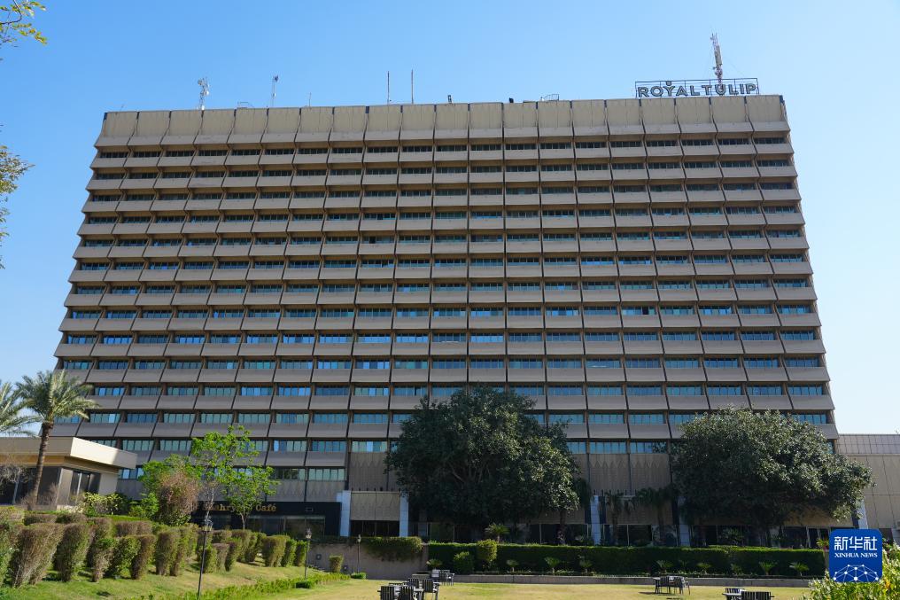这是3月17日在伊拉克首都巴格达“绿区”拍摄的遭空袭的拉希德酒店。新华社记者 段敏夫 摄