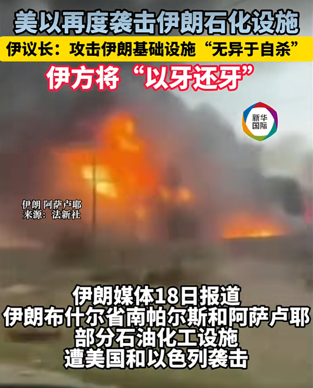 美以袭击伊朗石化设施 伊议长:将“以牙还牙”
