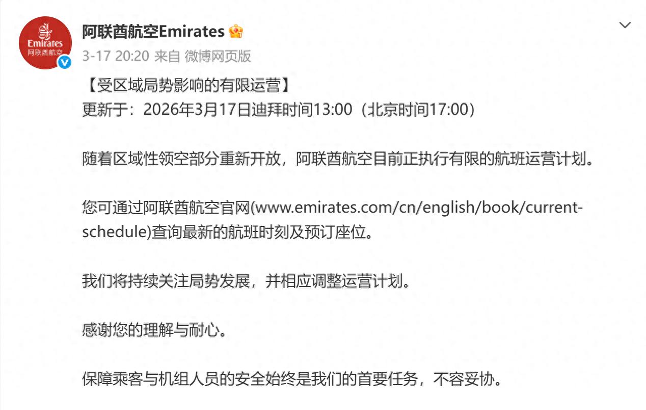 红星新闻记者注意到,在小红书、抖音等社交平台上,最近也有不少迪拜当地网友在实时跟进机场的运营情况,有些已经购票的网友表示,只要到时候航司不取消航班,就还是会选择按照计划出行。“只要敢飞我就敢坐,如果飞机能够按计划起飞,那就说明还是经过了评估且安全的。”有网友表示。