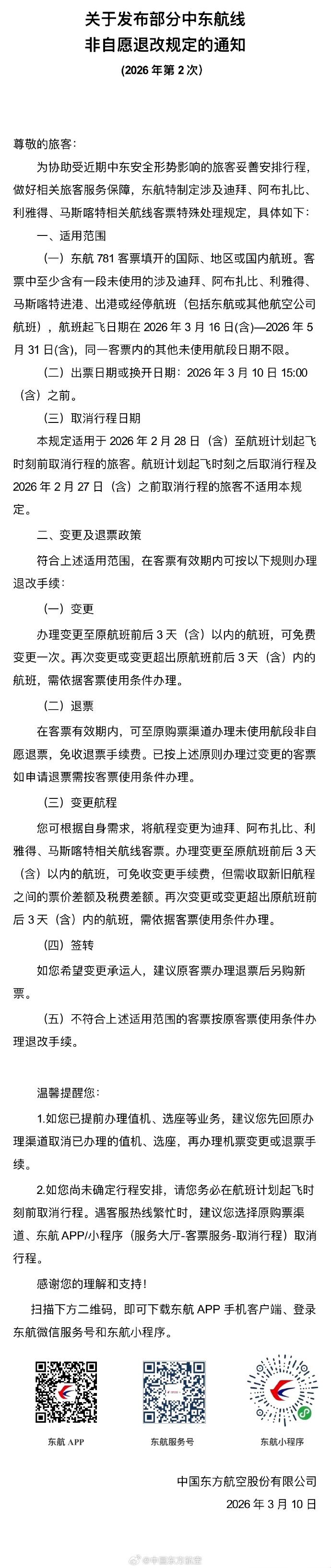 图据中国东方航空微博